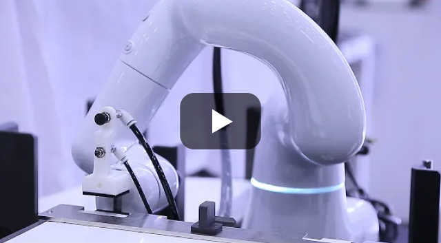 Collaborative robots do not require safety fences. The unique outer contour has no sharp edges, and consists of curves that prevent hands from getting caught. Sensors are built into the six moving parts for constant monitoring of speed and torque, to guar-antee safety from a function-al aspect (planning to obtain certification from a third-par-ty certification authority).
