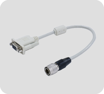 This cable connects to a commercially available VGA cable for connection to an external monitor.