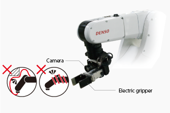 The robot's base installation area and arm width are compactly designed, enabling the robot to flexibly move even in a small space.