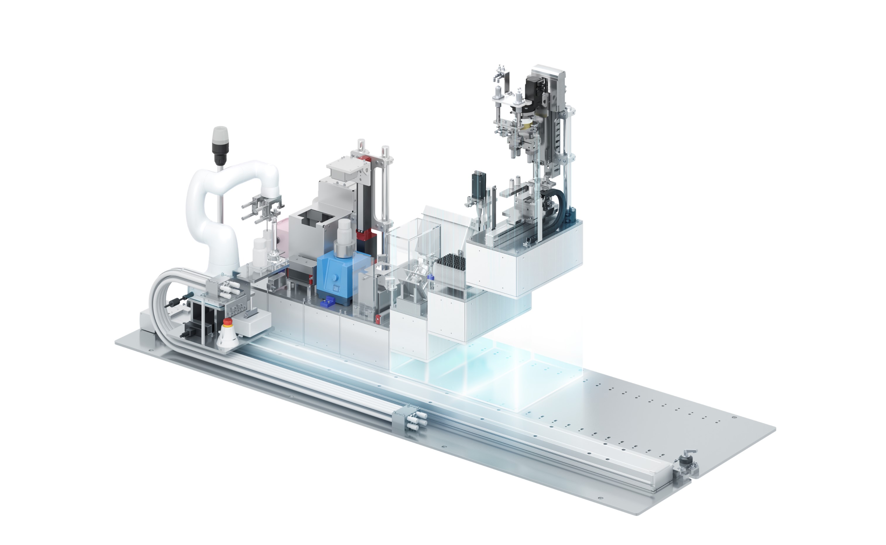 COBOTTAと、独自開発の標準化モジュールを組み合わせた柔軟で拡張性の高いシステムです。モジュールの組み合わせや配置は自由に設定可能で、スライド移動するロボットが複数のモジュールを連携制御します。