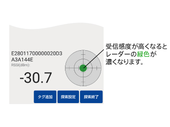 RFIDによる、探索業務を体感頂けます。レーダーの色と大きさで受信感度をお知らせするため、直感的に探し物を発見できます。