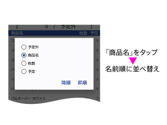 通常、読み取り結果はEPCで表示されますが、商品名(あいうえお順)で並び替えることが可能です。大量の商品があっても、読み取り結果の確認がスムーズです。