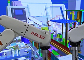 曲げ・ひねり動作、長尺物搬送などの作業工程を2台のロボットで実現