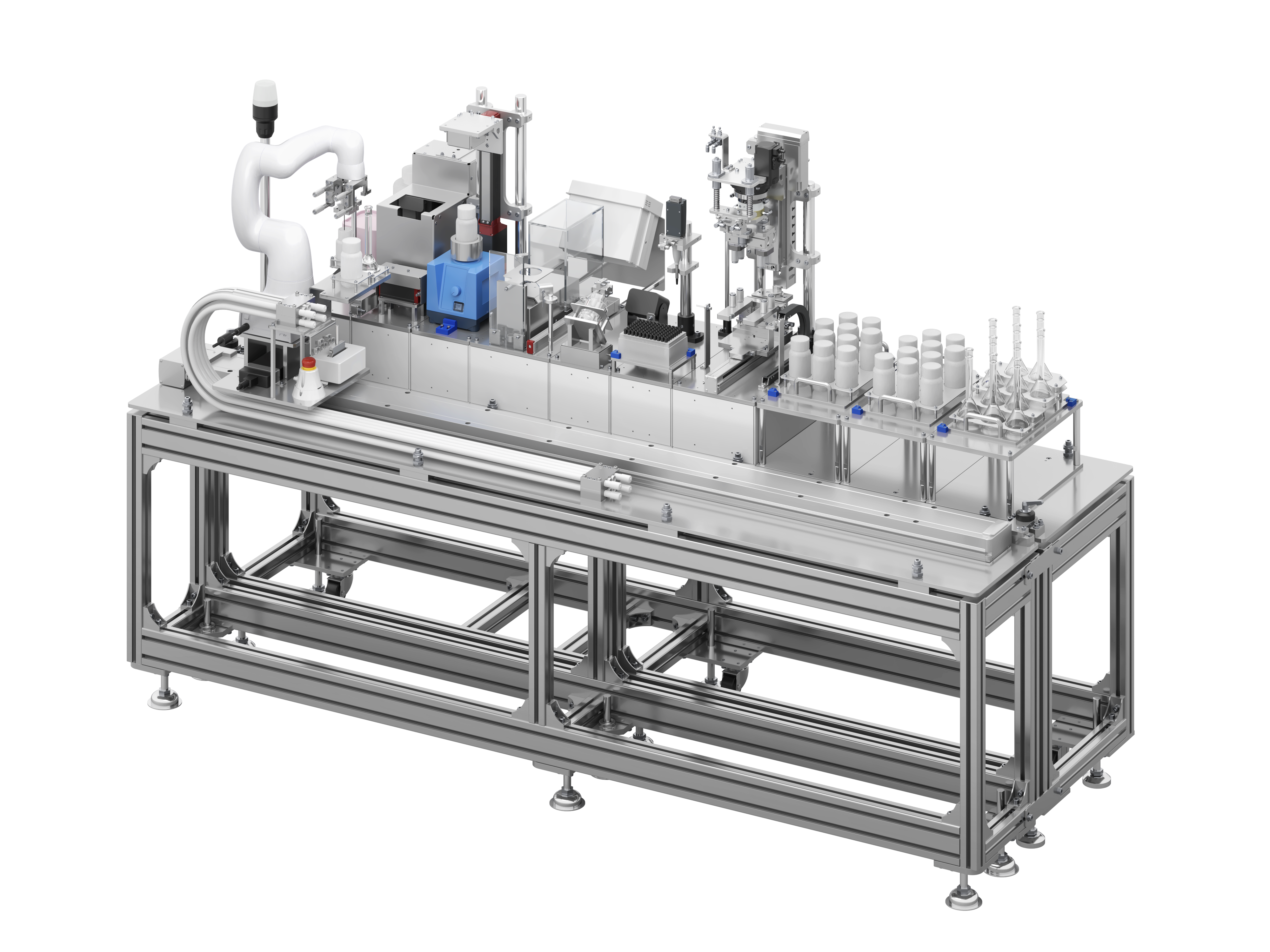 そうした中で、標準化されたシステムだけでは対応しきれない現場固有の要件や、研究の多様さに伴うシステム構成変更への柔軟な対応が求められるようになってくることを見越し、このたび、「モジュール型ラボラトリオートメーションシステム(通称:COBOTTA LAB Modules)」を新たにラインアップに加えました。