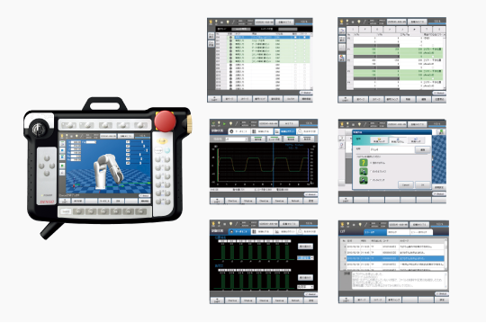 ロボットと周辺機器の操作盤として、ティーチングペンダントの画面をカスタマイズ可能です。