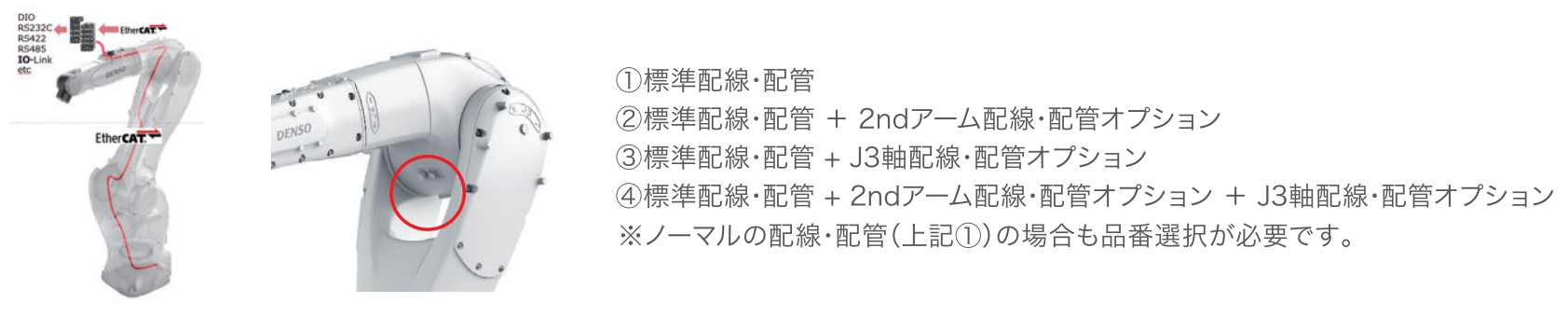 | 信号線、Ethernet | セカンドアーム部 | オプション無し | - | 信号線:15芯 Ethernetケーブル:1本 |