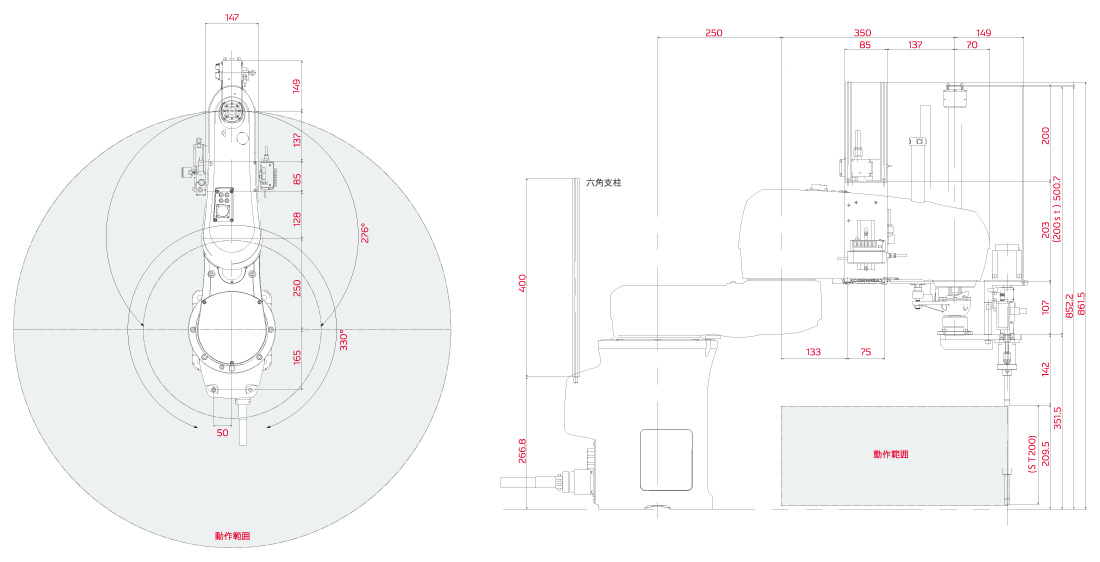 | HMロボット | アーム型式 | HM-40602、HM-40603 | HM-40702、HM-40703 | ||