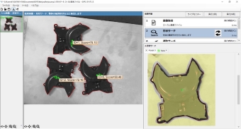 対象物の形状モデルを登録し、同じ形状の対象物の位置角度を検出できる機能。