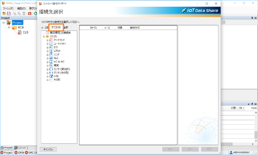 プロジェクトのツリーからコントローラ[RC8]を選択し、