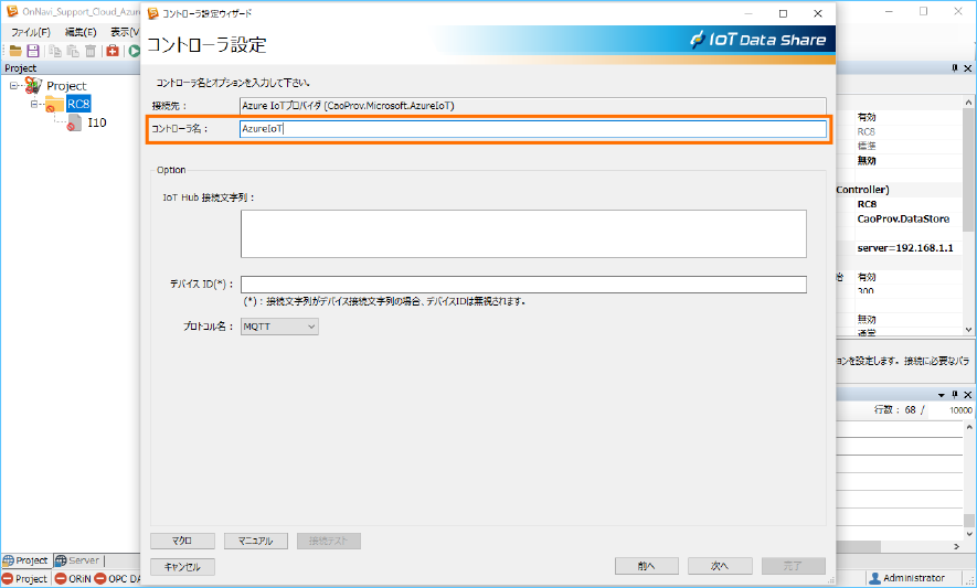 - コントローラ名:AzureIoT