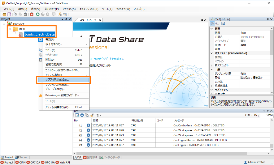右クリックメニューから [サブアイテムの追加]を選択します。