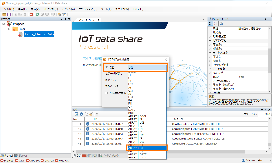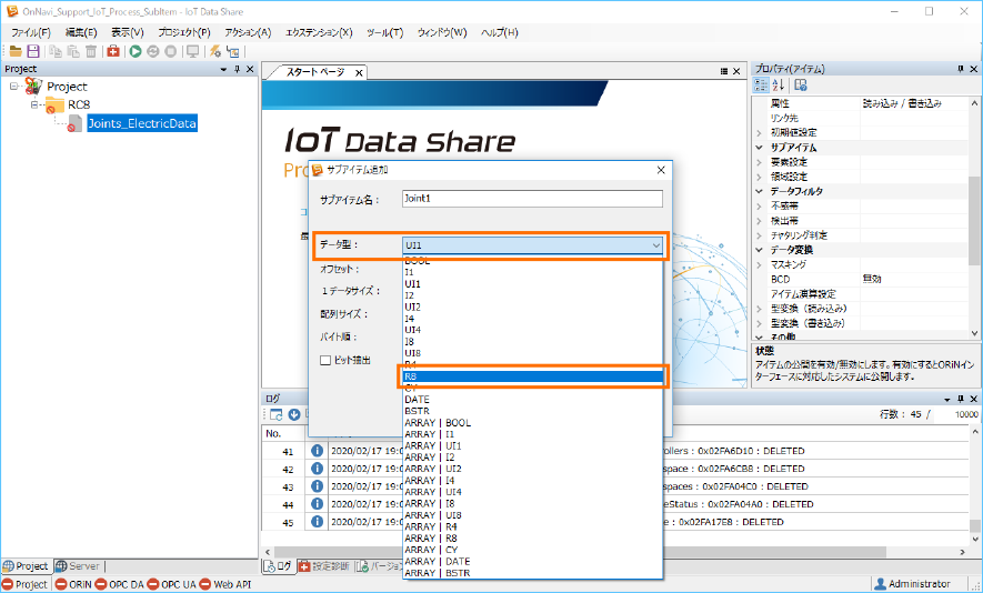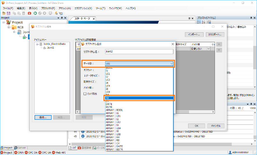 ここでは、データ型リストから[R8]を選択します。