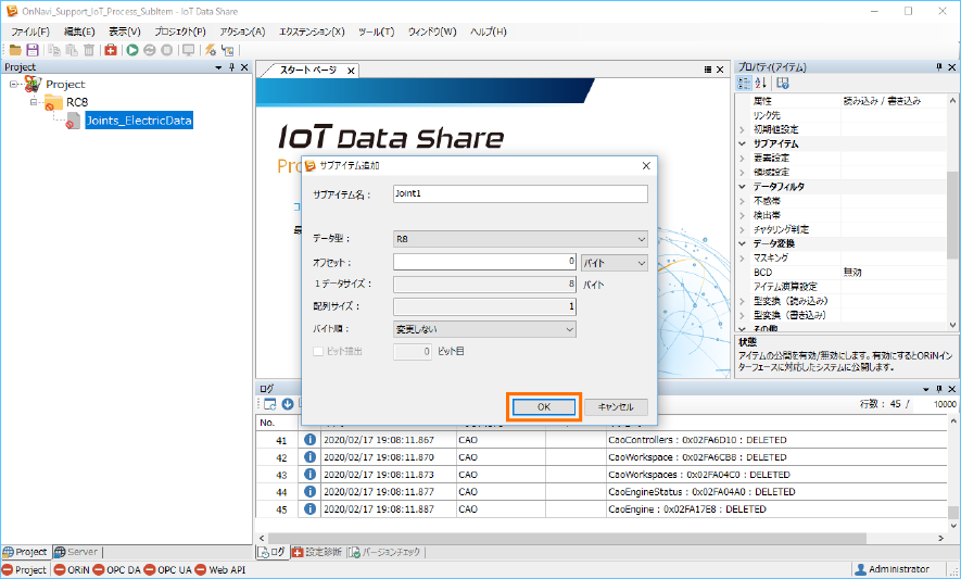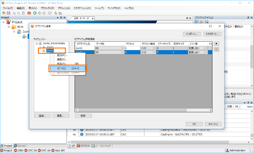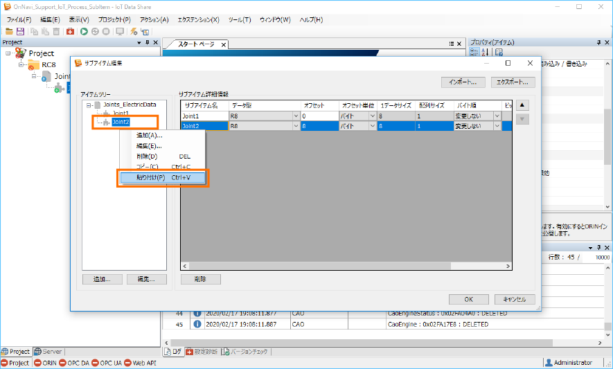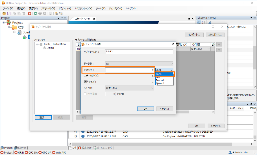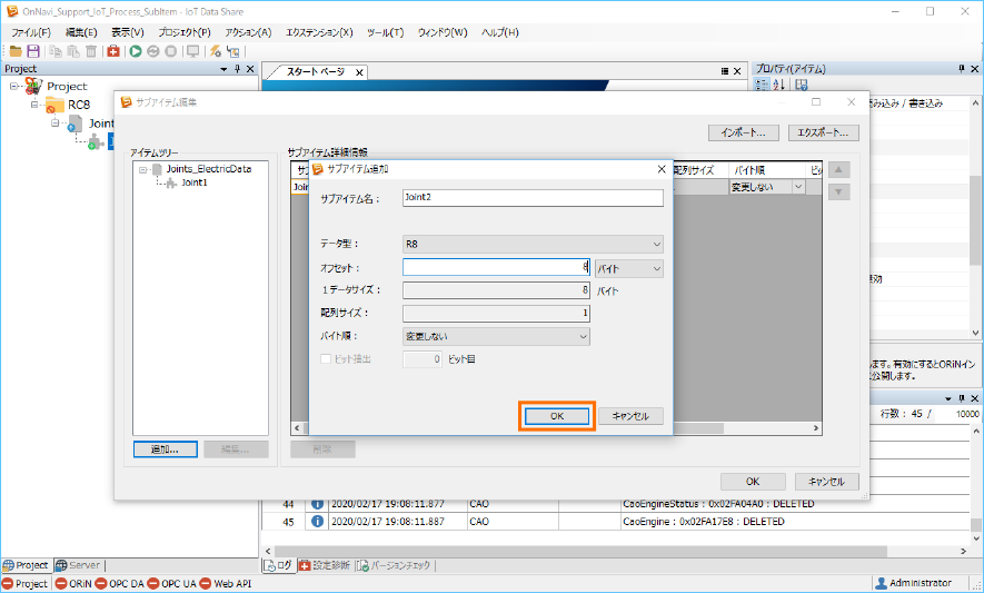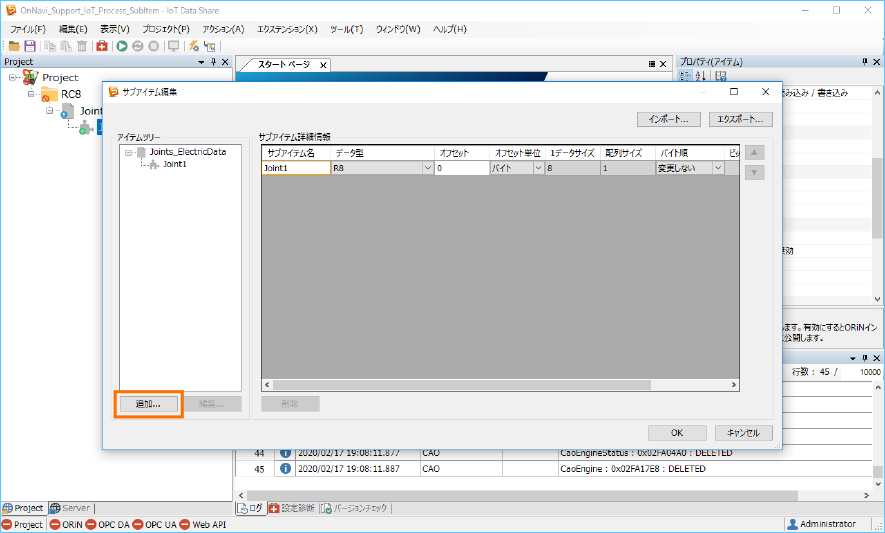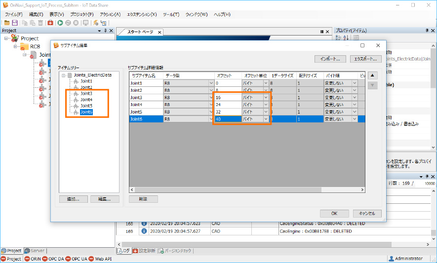 ここでは、サブアイテム名をそれぞれ ”Joint3”、”Joint4” 、”Joint5”、”Joint6” を入力します。[データ型]はそのままです。