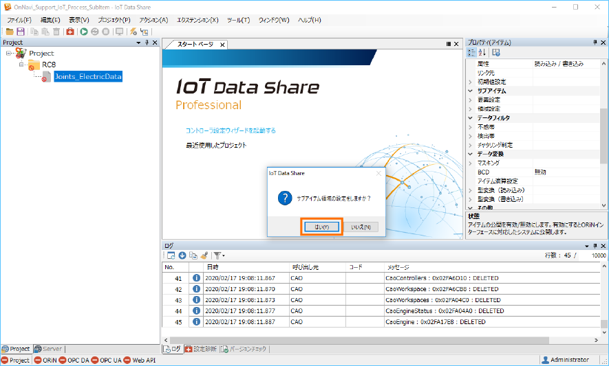 領域設定をします。[はい]ボタンをクリックします。