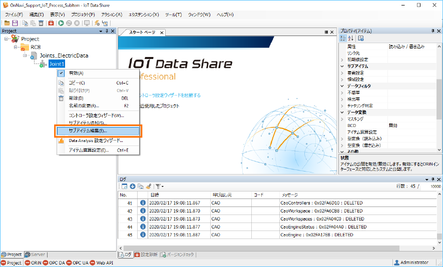 右クリックメニューから[サブアイテム編集]を選択します。