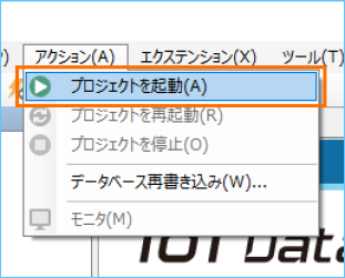 [アクション]メニューから[プロジェクトを起動]を選択します。
