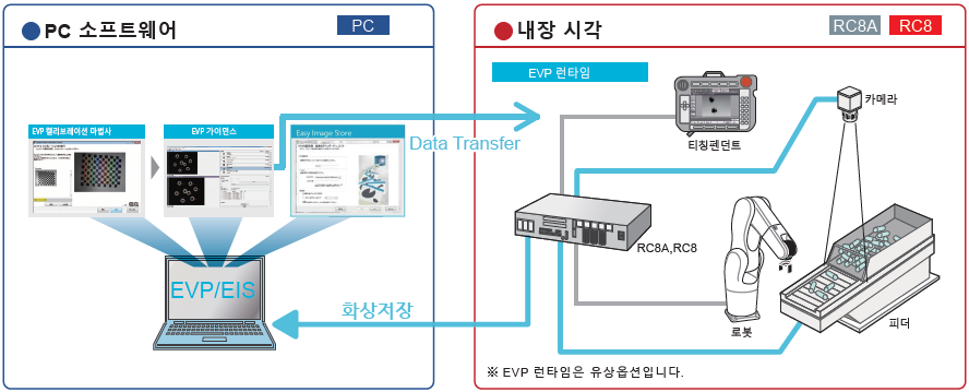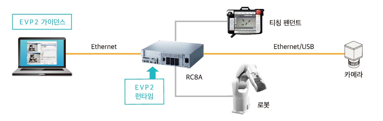 실행 시(EVP2 런타임)에는 로봇 컨트롤러와 연결된 카메라만으로 가동시킬 수 있습니다.