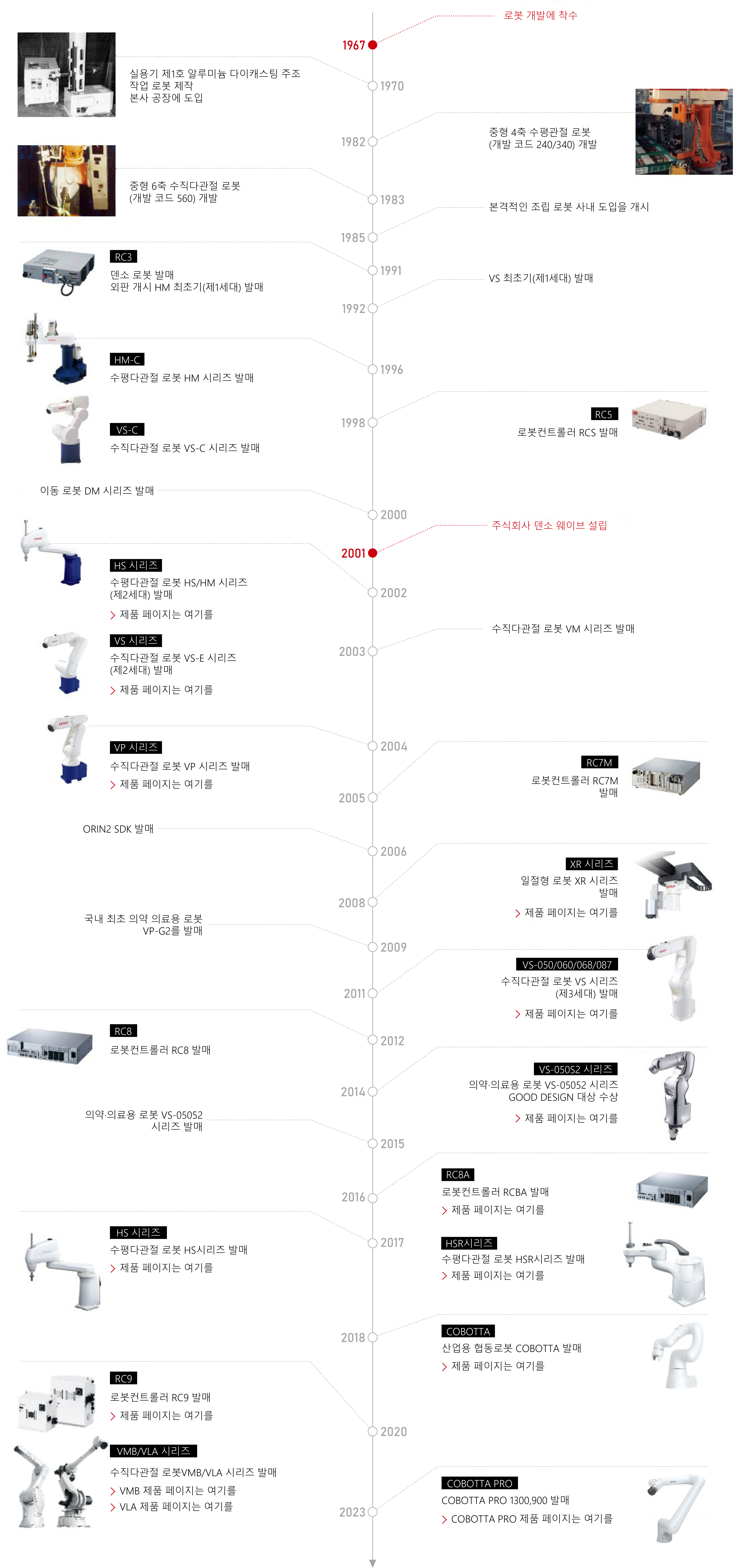 지금에는 조립작업용 산업용 소형 로봇 분야에서 시장 선도자의 지위를 확립한 덴소 로봇은 신뢰성,