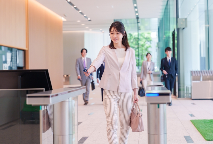 ICカードによる入退室管理は、カードを用いて施設への入室・退室を認証・記録する仕組みです。利用者は事前に登録されたICカードをリーダーにかざすことで、本人確認が行われ、入退室の日時や場所が自動的にログとして保存されます。これにより、不正侵入防止や勤怠管理、災害時の所在確認が容易になります。システムはクラウド連携に対応する場合もあり、社外からのリアルタイム監視が可能です。ICカードは低コストで導入しやすく、運用も簡単なため、オフィスや工場など幅広い施設で普及しています。