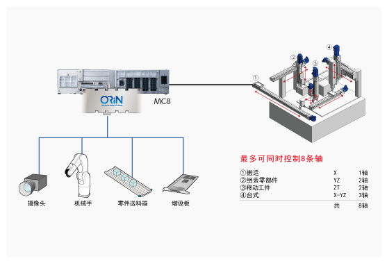 ●支持ORiN,因此,可利用RC8接入器,方便与各种FA设备联动,并可通过机器人语言来控制整个应用软件,削减程序维护工时。