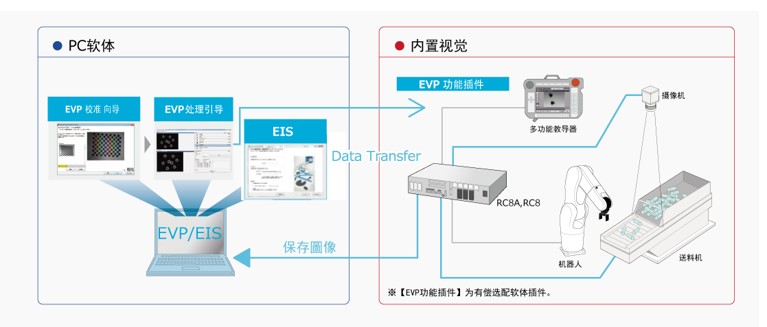 执行时(EVP2功能插件),可以仅用连接至机器人控制器的相机执行动作。